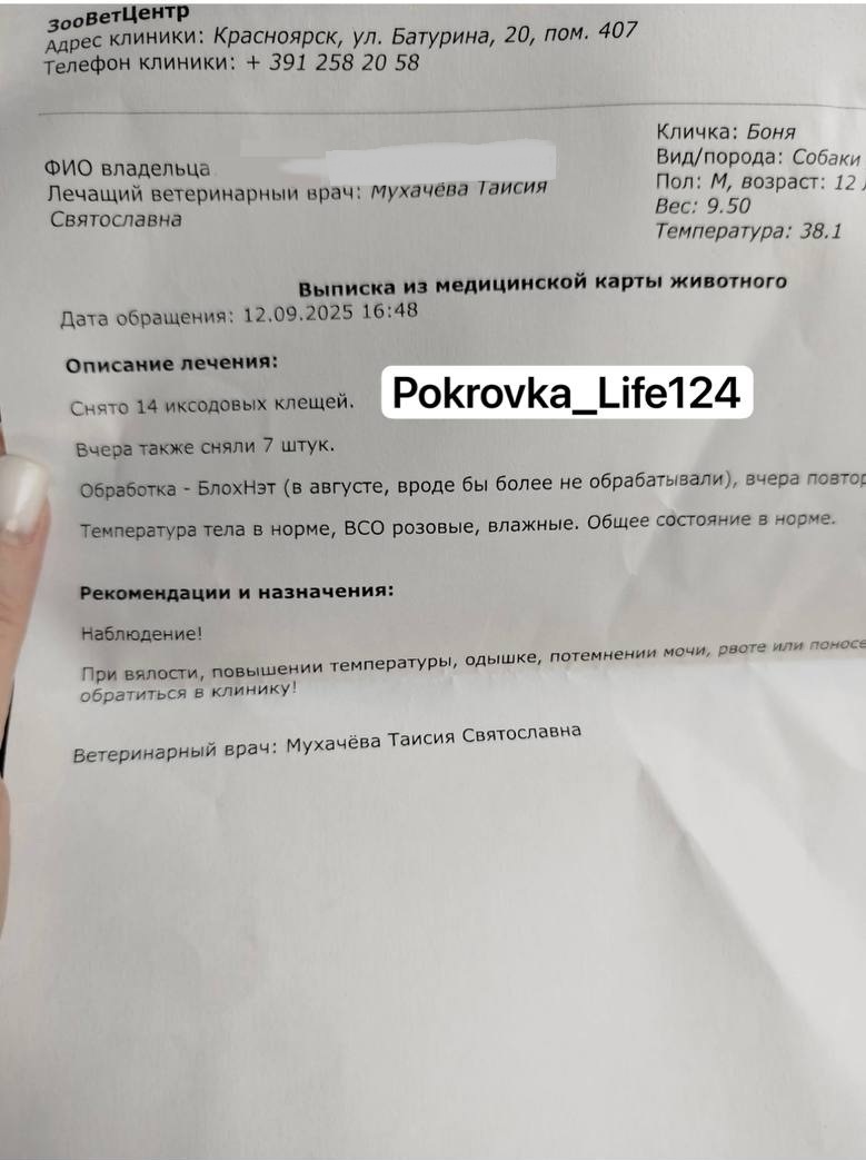 Жительница Красноярка после прогулки сняла с собаки 22 клеща. Историей поделились в телеграм-канале Pokrovka_Life124.