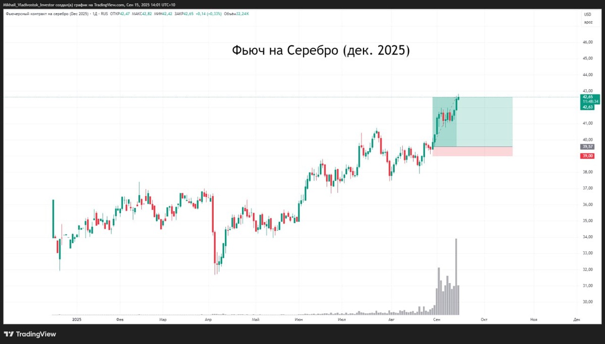 Где я сейчас держу свои кровные!? 🤓 1. Фьюч на серебро. Средняя 39,57 $SVZ5 Жду цену еще выше. В любом случае сделка уже безопасная. 2. Фьюч на Юань/Рубль. Средняя 11,913 $CRZ5 Тут тоже я склоняюсь к дальнейшему ослаблению рубля. В коррекции так же можно будет поискать покупки. 3. Фонд Денежный рынок от Т-Банк. $TMON@ Как по мне хороший инструмент, в котором можно припарковать ликвидность на время застоя по сделкам. Комиссий нет. Доходность в районе 17% вроде. Если будут хорошие сделки по акциям, то буду продавать частями и перенаправлять ликвидность. #серебро #юань #сделка #биржа