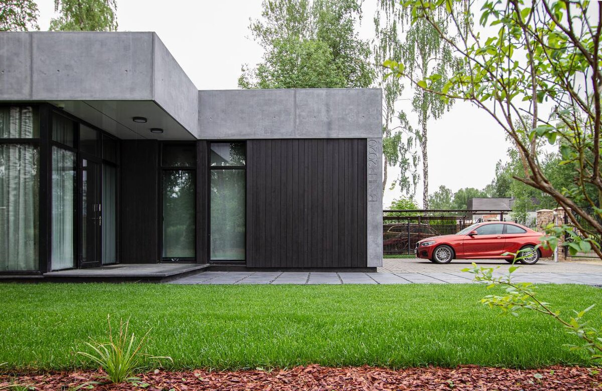 Бетон. Стекло. Обожженное дерево.