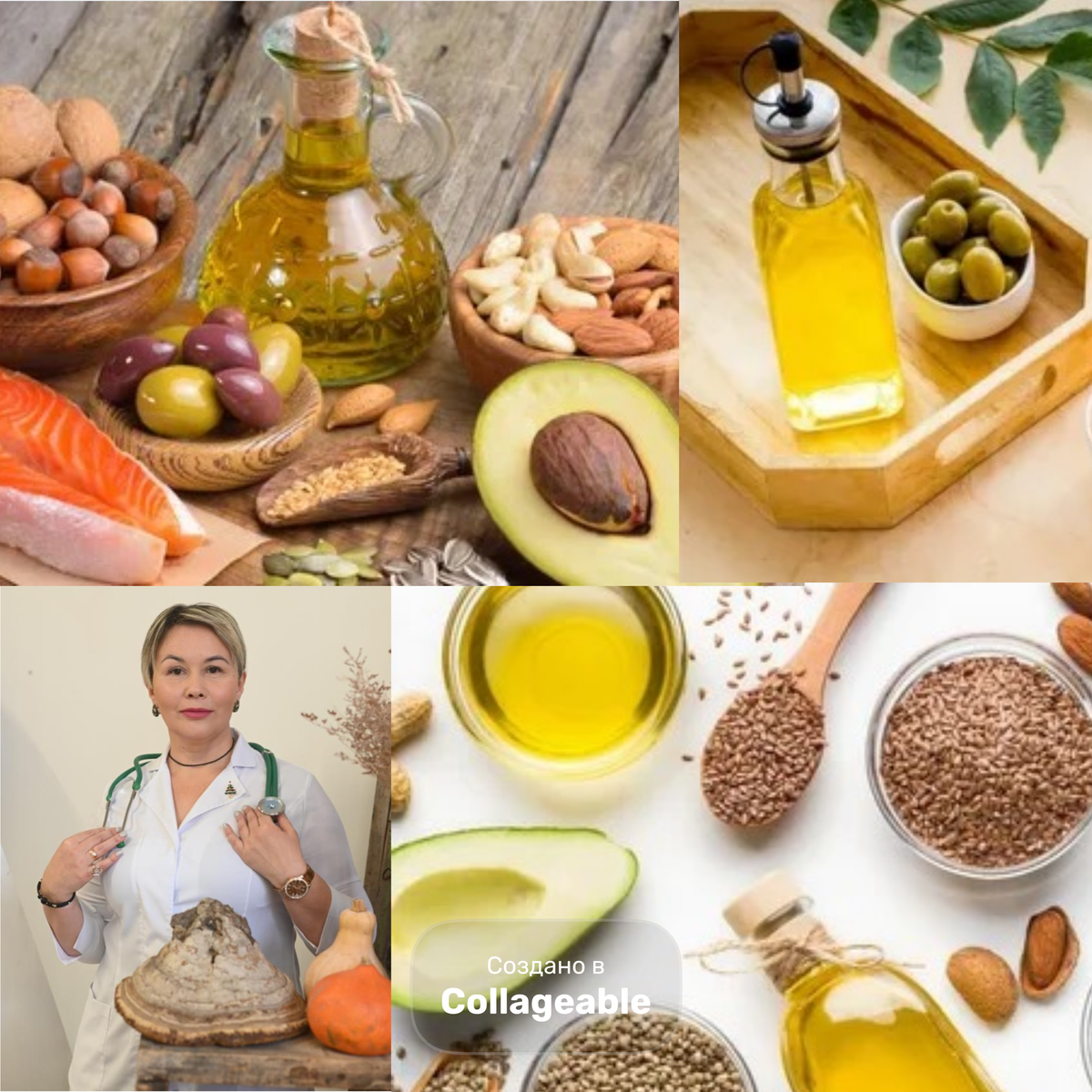 - Содержатся в рыбе, орехах, авокадо, льняном масле, оливках