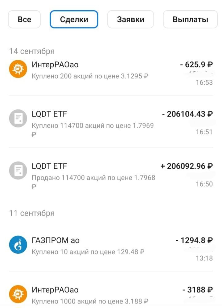 Подведем итоги недели с 8 по 14 сентября ✅Пришли выплаты по рейтам: Рентал ПРО – 913₽ за 100 паев, Парус Красноярск – 39₽ за 1 пай, Парус Логистика – 1283,83₽ за 120 паев, Парус Двинцев – 127,60₽ за 18 паев, Парус Норд – 544₽ за 50 паев. Купоны пришли только по облигации Реинольц – 27,41₽ за 1 шт. На IB пришла выплата от Realty Income - $1,5 за 8 бумаг. 📌По покупкам: 1 лот Парус ДВН на Сбере, 1 лот Газпрома и 12 лотов ИнтерРАО на ВТБ. На ВТБ решила получить квалифицированного инвестора. Закинула 200 тысяч рублей и ежедневно покупаю и продаю паи ВТБ Ликвидность на эту сумму. Таким образом, за 15 дней планирую набрать 6 млн рублей и по завершению 3 квартала подать запрос на получение статуса, так как в Сбере и в Т-Банке квал у меня есть, а в ВТБ, как я поняла, нужно именно у них выполнить условие. Денежный поток моего портфеля сейчас составляет 25517₽ (+94₽ за неделю).