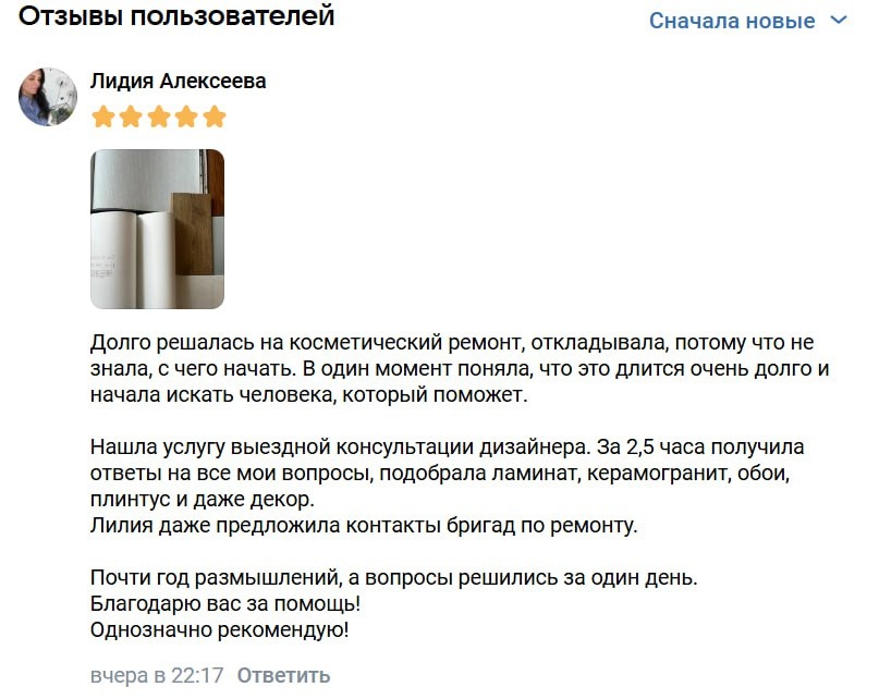 #ОТЗЫВ - это не просто обратная связь - это взаимный обмен благодарностью Зачастую, мы забываем благодарить не потому что мы не благодарные, а потому что у каждого из нас много дел ❤️ Буду благодарна вам за отзывы - за вашу обратную связь, если мы с вами работали 🌸 Благодарю каждого из вас за доверие #слюбовью #вашарадченко ______________________ Ссылки на ресурсы для отзывов ⤵️ 🟣2ГИС: https://2gis.ru/krasnoyarsk/firm/70000001059774361/tab/reviews?m=92.915805%2C56.033329%2F16 🟣Яндекс карты: https://yandex.ru/navi/org/dizayn_interyerov/23354817248?si=af5hhy1yyduza9f5wqjxbzaqy4 🟣VK: https://vk.com/reviews-214393189 🟣Фламп: https://krasnoyarsk.flamp.ru/firm/kompaniya_po_dizajjnu_intererov_lilii_radchenko-70000001059774361#reviews