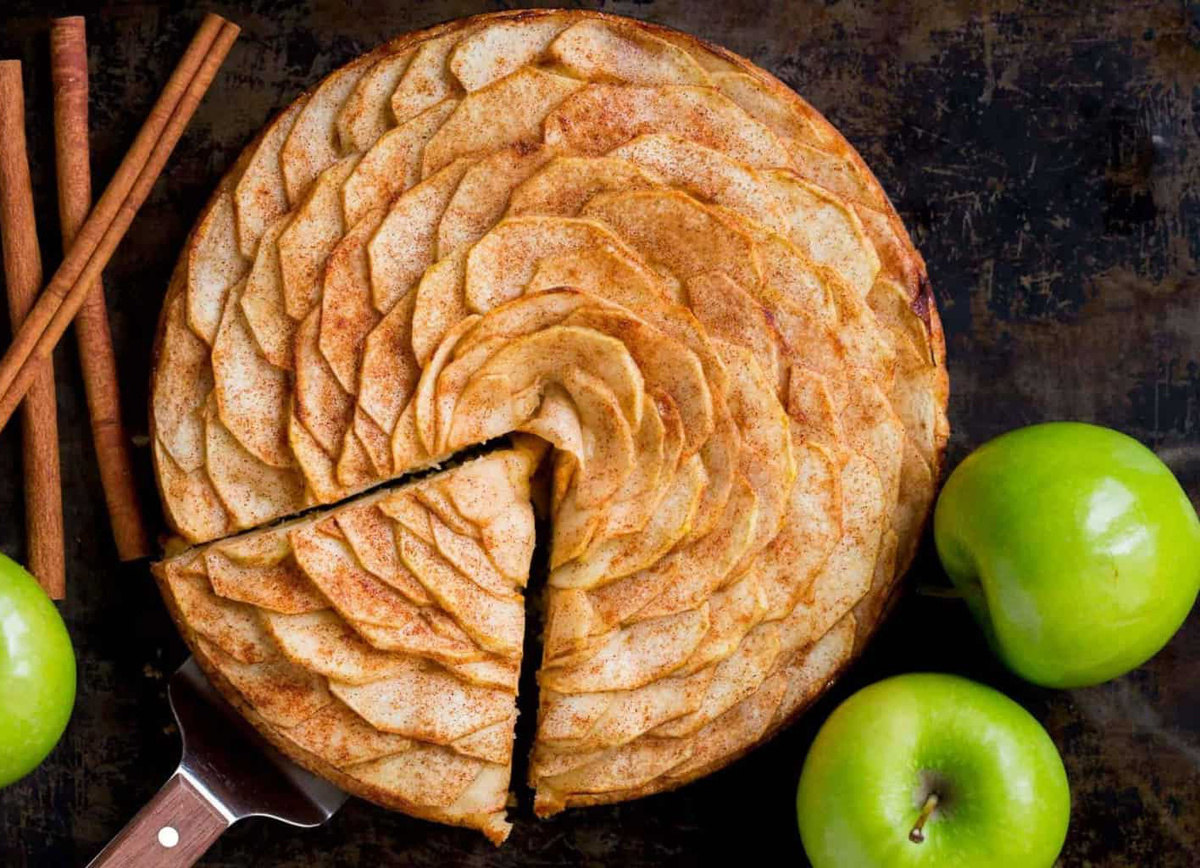 Этот яблочный пирог — просто загляденье! Он украшен красивым узором из нарезанных ломтиками яблок (и это проще, чем вы думаете!). Сок от ломтиков яблок, покрытых корицей и сахаром, пропитывает мягкую маслянистую корочку. Нам нравится, что этот яблочный пирог с розами слегка сладковатый и совершенно неотразимый. Это действительно прекрасный десерт, который на удивление легко и недорого приготовить! Вы поразите своих друзей и близких этим яблочным пирогом. Он идеально подходит для компании, потому что его просто и быстро готовить. Ленивый способ: если у вас мало времени, просто равномерно распределите все яблоки с сахаром по поверхности и запеките — ваш пирог будет таким же вкусным. Общее время приготовления: 50 минут Количество порций: 8 ломтиков Питательность на порцию: 328 ккал / 39 г. углеводы / 3 г. белки / 18 г. жиры 1. Разогрейте духовку до 190 °C и смажьте маслом форму для выпечки диаметром 23 см. Просейте муку вместе с сахаром, 1/4 ч. л. соли и 2 ч. л. разрыхлителя. Нарежьте о