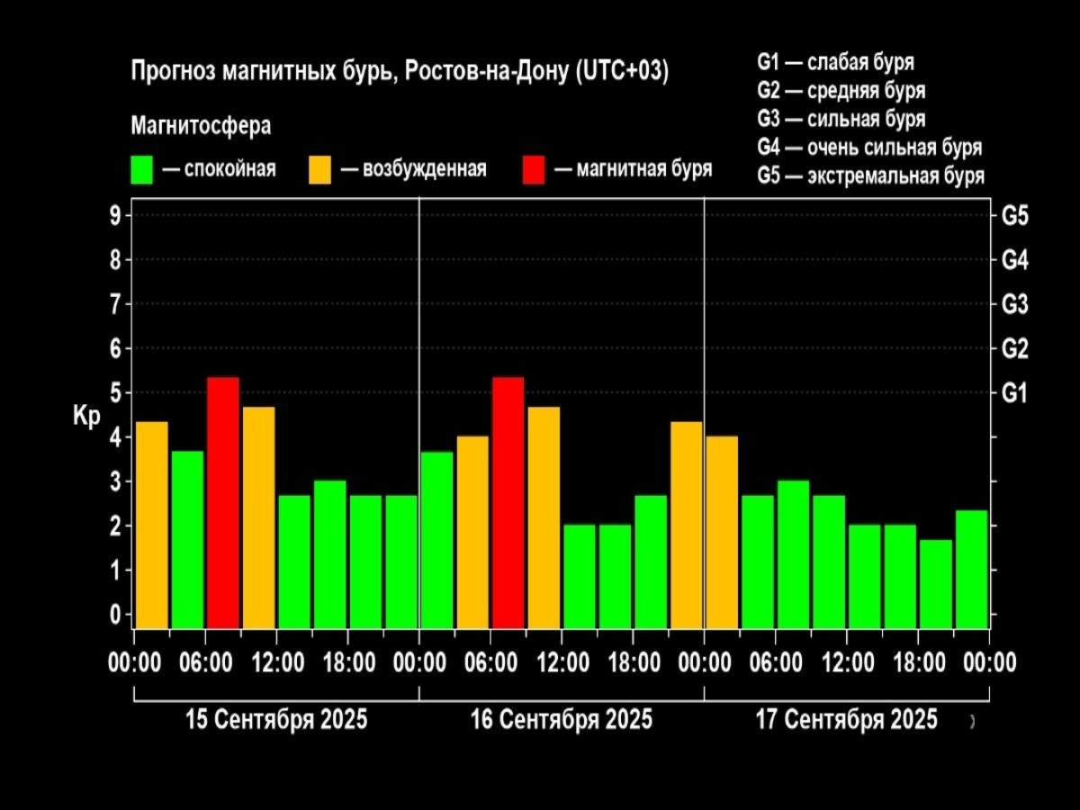 В начале недели Ростов накроют мощные магнитные бури 😵💫 Об этом сообщили специалисты Лаборатории солнечной астрономии. В понедельник, 15 сентября, геомагнитные удары атакуют Землю примерно с 6:00. Активность бурь начнет спадать к 9:00. А к 12:00 она сойдет на минимум. Во вторник, 16 сентября, магнитная буря начнется с 6:00. Пик продлится примерно до 9:00, а к 12:00 вовсе сойдет на нет. Также в ночь 17 сентября ожидается возбуждение магнитосферы. Его прогнозируют с 21:00 до 1:00. Стоит отметить, что в эти дни сила ударов достигнет пяти баллов (уровень G1). Что значит слабое влияние. Однако это не отрицает, что метеозависимые люди могут себя чувствовать нехорошо. В это время стоит отказаться от табака, алкоголя и вредной пищи. Лучше больше отдыхать на свежем воздухе и есть легкую пищу.