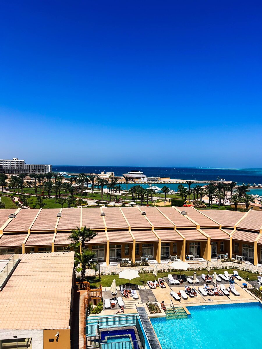 Hilton Hurghada Plaza В завершении серии постов про Хургаду, решил рассказать про отель в котором мы жили. Выбирала отель Саша, я ей в этом плане доверяю больше чем себе. Отель Hilton расположен в районе «старого города» на первой линии. У него свой, закрытый бухтой, пляж, который защищен от волн. Песок, плавный вход в воду, огромное количество лежаков, бар в центре пляжа. Территория отеля не сказать что очень большая, но уютная и зеленая. Есть еще несколько бассейнов, но мы ни разу в них не купались. Вообще не понимаю зачем сидеть у бассейна, когда есть море. Я не любитель плескаться в воде, но лежать на шезлонги под шум волн куда приятнее, чем под музыку у бассейна. Номерной фонд состоит из номеров с балконом и без, при этом часть выходят в город, часть на море. Мы выбрали и вид на море, и балкон. Так как очень любим перед сном посидеть на балконе, поделиться впечатлениями от прошедшего дня и спланировать завтра. Мы жили по системе всё включено, хотя по факту пользовались только