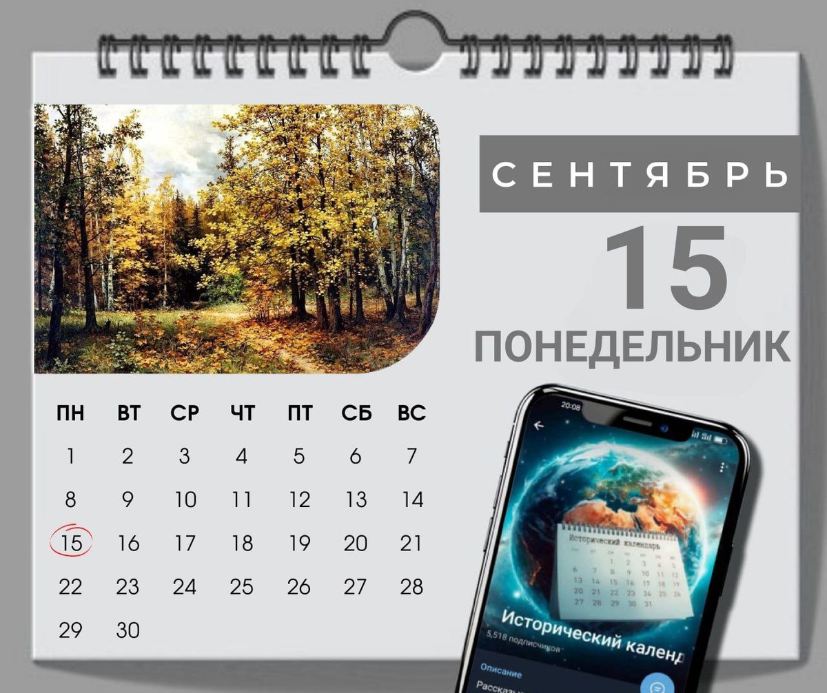 📌 Памятные даты: ● День памяти князя Олега 📌 Праздники: ● Российский день леса🌲 ● День рождения экологической организации "Гринпис" (1971) ● День врача-трансфузиолога ● День санитарно-эпидемиологической службы РФ ● День единства народов Дагестана ● Международный день демократии ● День свободных денег 💵 ● День благодарности жене ● День худеющих ● Всемирный день афро ● День фетровой шляпы ● Международный день точки ● Дeнь "Кoгдa-нибудь" ● День совпадений снов ● День мятного ликёра ● День тыквенного сока ● Всемирный день распространения информации о лимфоме 📅 Исторический календарь