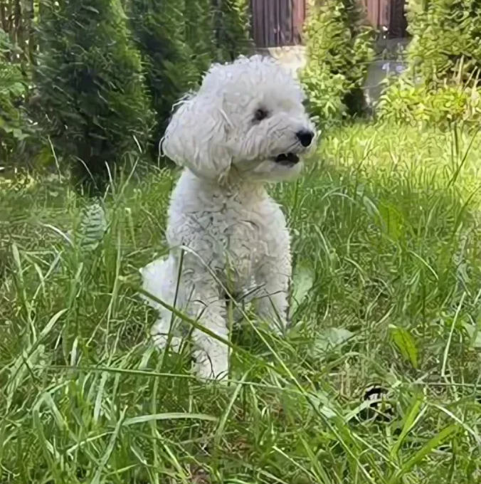 Приехали этим летом на наши дачи новые гости. Молодая семья, муж с женой и собачка - пуделек белый. К бабушке мужа, проведать, пожаловали.