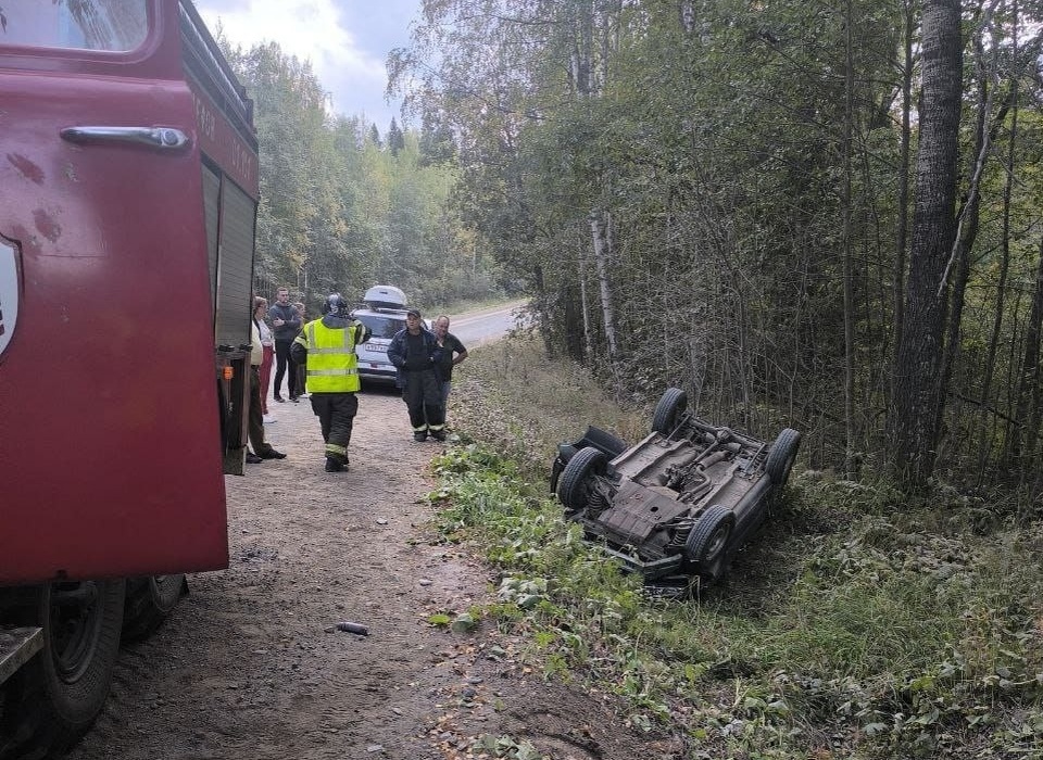 Под Петрозаводском две машины перевернулись в кювете после мощного столкновения