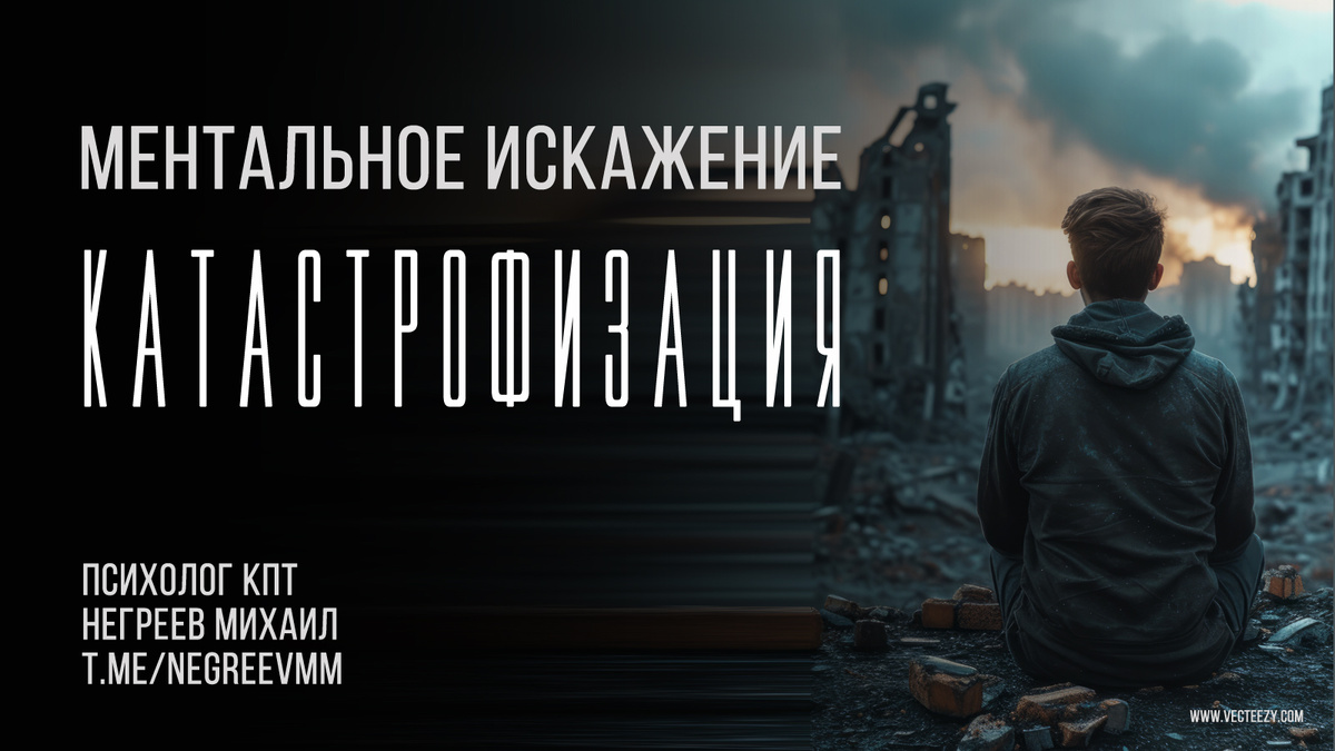 Что такое катастрофизация? Катастрофизация — это когнитивное искажение, при котором человек предсказывает будущее в негативном ключе, преувеличивая масштабы и тяжесть возможных событий, вплоть до полной катастрофы. Это не просто пессимизм, а своего рода «умственная буря», которая запускает механизм «снежного кома»: одна мысль о небольшой проблеме быстро обрастает цепью ужасающих последствий, приводя к тревоге и панике. Как это работает? Механизм «Что, если?..» Катастрофизация следует по стандартному шаблону, который часто называют «каскадом катастроф» или «деревом катастроф»: Пусковой механизм (триггер): происходит небольшое “негативное” событие или возникает мысль о нем. Пример: «Начальник вызвал меня на внеплановую встречу завтра утром». Первая негативная интерпретация - мысль: «Наверное, я что-то сделал не так». Запуск цепной реакции «Что, если?..., А вдруг...», мышление перескакивает от одного худшего сценария к другому: «Вдруг он раскритикует мой отчет?» «Он недоволен и уволит мен