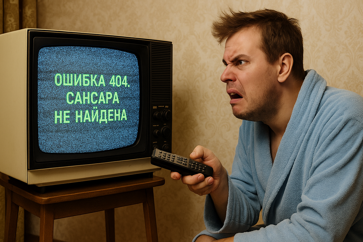 (раздражённо) Ну где тут канал с жизнью? Третий день жму кнопки, а получаю только шипение. Телевизор: