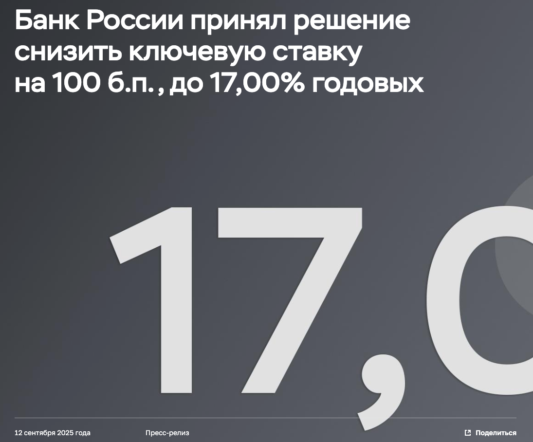 Теперь наша ключевая ставка — 17%. Ждали, что снизим сильнее? Типа, инфляция снизилась, экономика замедляется — чем не повод. Но нас не проведёшь.