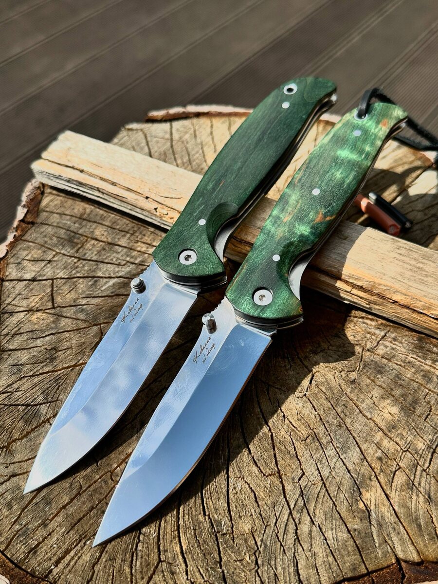 📸 Складной нож «Корвет» — в наличии 🌲 Лимитированная партия — открыта свободная продажа Идеальный выбор для охоты, рыбалки, туризма и коллекции. Основные преимущества — Клинок из инструментальной стали Х12МФ с криообработкой — Твердость 61–62 HRC — уверенно держит заточку! — Рукоять накладки из стабилизированной карельской берёзы глубокого зелёного оттенка. — Надёжный замок Liner-lock — максимально безопасно при любых условиях. — В комплекте — ножны из натуральной кожи Дополнительно можем изготовить формованные ножны (+8 000₽). Цена за первый и второй нож: ~9 980₽~ → 8 983₽ по акции 💬 Заказать просто • Пишите @Nazarklinokbot • WhatsApp/Viber: +7 910 134-38-31 #корвет #складнойнож #Х12МФ #карельскаяберёза #купитьнож #КузницаНазароваВВ