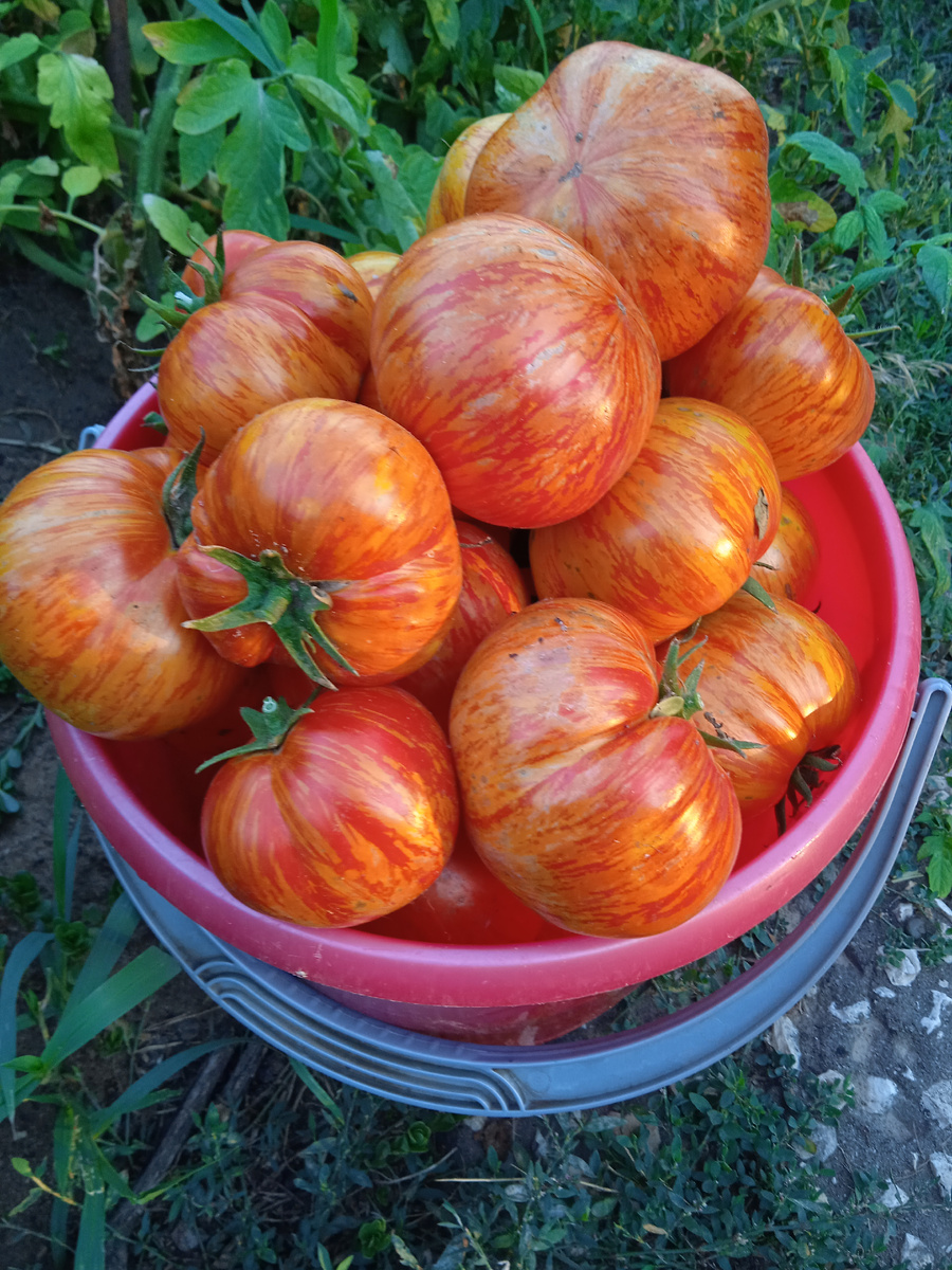 Всем доброе прекрасное утро! Пока поездка в Элисту разрабатывается))), сидеть сложа руки, не буду. В сельской местности продолжается горячая пора уборки урожая. Из томатов больше всего люблю вот эти, полосатики. Мясистые, сладкие, настоящие. Много их сажаю, хотя и от других не отказываюсь. Круглые, ровные – для консервации, так называемые «сливки» – для вяления, а полосатики на салат. Кстати, и томат из них густой получается. А он как раз нужен для рецепта, которым сегодня поделюсь. Скажу сразу: рецепты мои, может, и не новы, но уже под вкус семьи подогнаны, десятилетним опытом проверены. И хотя есть поговорка: «Салатом друзей не завоюешь», это как сказать, как сказать...Не меньше 10 лет закрываю его по две порции, и за зиму все съедается. Итак: попробуйте, рекомендую. Закипятить 4 литра томата, добавить 1 кг перца, 1 кг баклажан (лучше очищенных), 1 кг моркови, 2 стакана (граненых) растительного масла, 1,5 стакана сахара, 2 ст.ложки соли (можно чуть больше). Варить 40 минут. За 15 мин