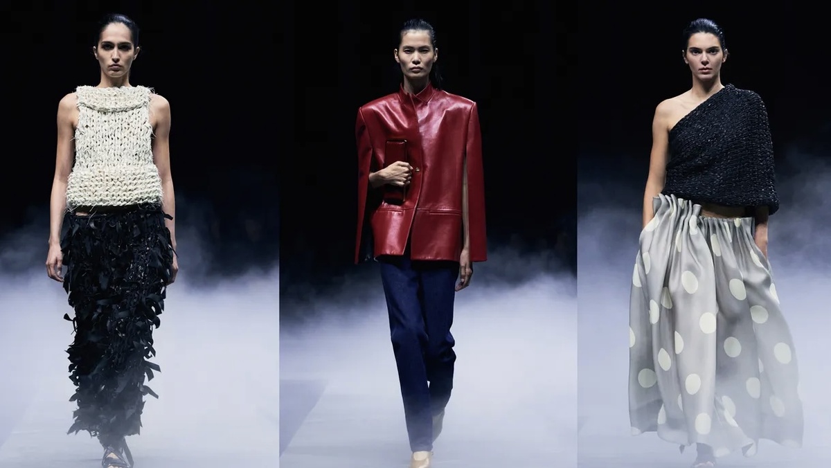 Показ Khaite на Нью-Йоркской неделе моды весна–лето 2026 стал одним из тех, где мода превращается в высказывание. Кэтрин Холстайн предложила зрителям не гладкую картину «тихой роскоши», а более сложную историю: о том, что уверенность может рождаться из хрупкости, а элегантность — из внутреннего напряжения. Пространство шоу окутывал лёгкий туман, отражающий подиум усиливал игру света и теней. В этой атмосфере вещи зазвучали особенно отчётливо: строгие формы вдруг открывали скрытую уязвимость, а невесомые ткани оказывались равными партнёрами жёсткой коже. Палитра и материалы Цветовая гамма коллекции остаётся в узнаваемом диапазоне Khaite — чёрный, песочные оттенки, тёмный деним. Но внимание приковывали акценты: ярко-красная кожа, крупный polka-dot, который будто нарочно нарушал привычный ритм образов. Ткани были противопоставлены друг другу — гибкая кожа и плотный деним соседствовали с тюлем, шёлком и лёгким крепом, создавая эффект напряжённого диалога. Силуэт Холстайн явно тяготеет