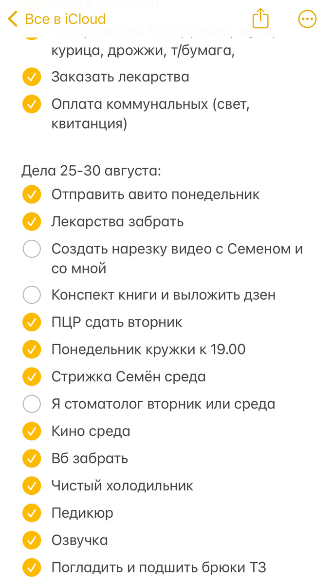 Половина сентября уже пролетела, а планы еще не придумала на сентябрь хотя сейчас я по-другому решила планировать свои желания, пишу список не на месяц, а на неделю, там может быть все, что угодно, пример на фото: Обычно в начале недели пишут список, если нужно, то дополняю. Итак, на сентябрь запланировала пока-что следующее: Сын у меня ходит на кружок акробатики, надо показать ему их настоящих😄 И так получилось, что ни разу не ходили с ним в цирк, все ждала, когда построят в нашем городе цирк, но наверно уже никогда, начали стройку еще когда я тут жила, потом уехала в Сибирь, вернулась уже, а цирк все строят… Скорее что-то одно получится, или театр или цирк, если что, то на октябрь что-то перенесем. Для здоровой спины хочу регулярно заниматься йогой вместе с сыном. Как раз это будет нашей новой привычкой на сентябрь. Не знаю, насколько это возможно, но хочу, чтобы сын самостоятельно, без моих напоминаний быстро собирался в школу утром, при этом сам контролировал время, успевает или