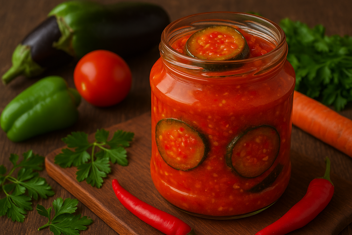 Заготовки на зиму – это не только способ сохранить урожай, но и настоящая традиция, которая объединяет поколения. Одним из самых популярных овощных салатов считается «Тёщин язык». Его любят за насыщенный вкус, умеренную остроту и простоту приготовления. Он прекрасно дополняет мясные блюда, подаётся как закуска или гарнир и всегда уходит со стола первым. Название «Тёщин язык» появилось благодаря форме нарезки овощей: длинные, тонкие ломтики кабачков или баклажанов напоминают язык. Существует версия, что острота салата тоже сыграла свою роль — мол, как и язык тёщи, она бывает жгучей. Блюдо стало популярным в советское время, когда хозяйки искали простые и доступные рецепты для заготовок. Его начали готовить из того, что всегда было под рукой: кабачков, томатов, моркови и перца. Постепенно салат приобрёл множество вариаций, но неизменным осталось одно — он всегда яркий, ароматный и аппетитный. Ингредиенты (на 6–7 банок по 0,5 л) 1. Подготовка овощей Кабачки нарезать кружочками или длинны