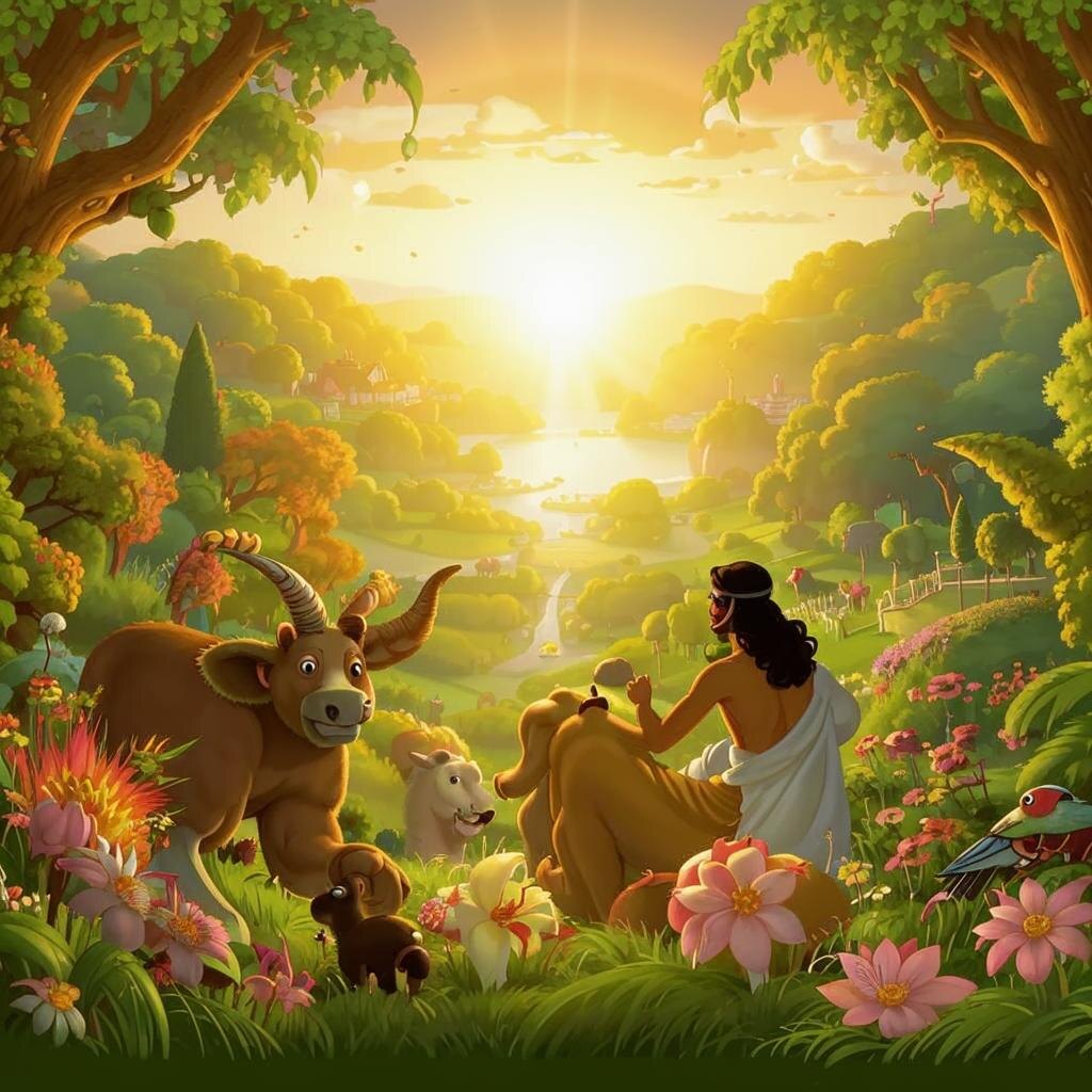 Слово Божье прозвучало, как гром, И земля ожила, исполнив закон. "Да произведет земля душу живую, По роду её, тварей земных, всякую. Скотов, гадов, зверей – всё, что ползает, бежит, По роду своему, как велено, возникнет!" И стало так. Земля, послушная воле, Родила жизнь, наполнив просторы поля. Звери земные, скот, и гады ползучие, По роду своему, в движении живучем. И Бог увидел – труд Его был благ, Всё созданное – совершенный знак. "Сотворим человека!" – вновь прозвучал приказ, "По образу Нашему, по подобию Нас! Пусть владычествуют над рыбами в морях, Над птицами в небесах, над скотом в полях. Над всей землёй, над гадами, что ползают в пыли, Власть им дана, чтоб мир земной вели!" И Бог создал человека, в Свой образ вдохнув, Мужчину и женщину, в жизнь их введя. Благословил их, сказав: "Плодитесь, множьтесь, Землю наполняйте, владычествуйте, не бойтесь! Над всем живым, что движется, что дышит на земле, Ваша власть, как дар, в великой полноте!" "Вот, вам дана вся трава, что семя несёт,