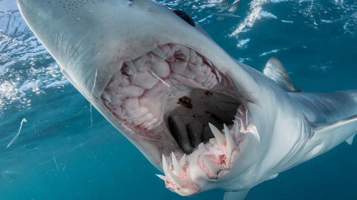 Эти акулы вырастают до 3–4 метров в длину и весят около 500 кг. Их зубы длинные, тонкие и слегка изогнутые — идеально подходящие для разрывания плоти. Мако атакует молниеносно: чаще всего снизу вверх, при этом иногда буквально вылетает из воды, выпрыгивая на несколько метров в высоту.