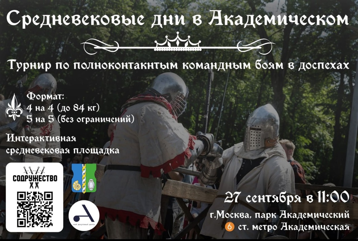 Турнир - Средневековые дни в Академическом Дата проведения: 27 сентября 2025 г. Место проведения: Москва, парк "Академический" В программе: Командные бои в формате 4х4 (до 84 кг.) - vk.com/id30074801 Командные бои в формате 5х5 (без ограничений) - vk.com/gribloyri Для зрителей будет действовать интерактивная средневековая площадка Участие без предварительной заявки невозможно. Заявки принимаются до 20 сентября. Более подробную информацию можно найти на странице мероприятия: vk.com/sodrugestvofight Полный календарь мероприятий можно посмотреть тут: donjon.ru/events/ Если вы организатор и хотите, чтоб мы рассказали о вашем мероприятии, пишите нам на shop@donjon.ru #Donjon #Турнир