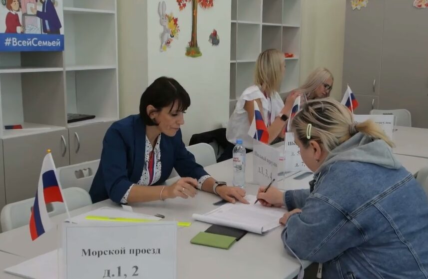 На кадрах избиратели регистрируются и получают бюллетени.