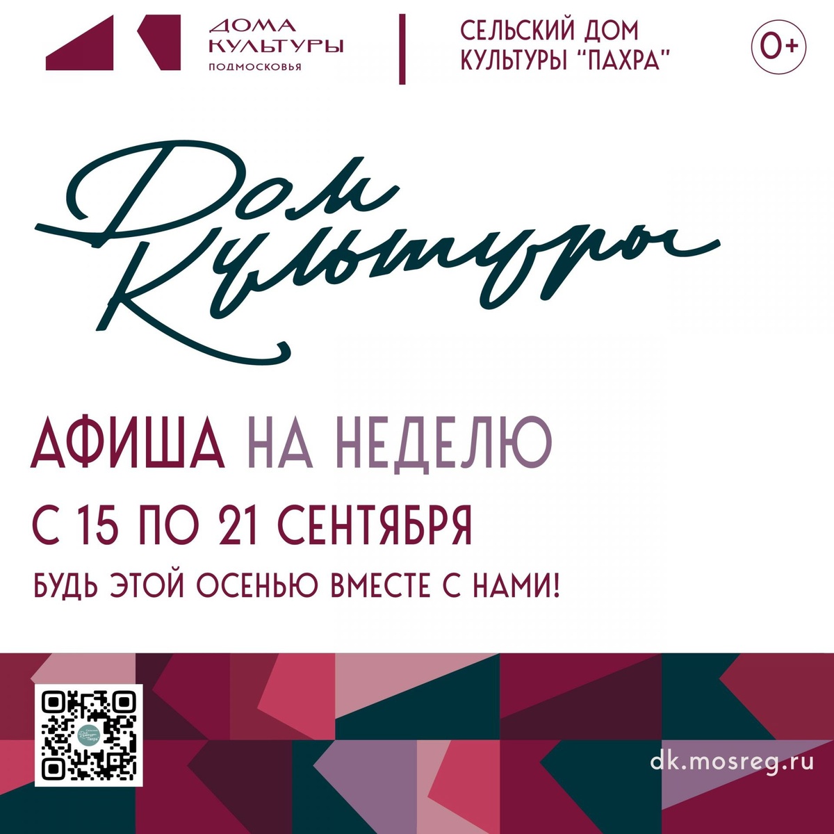✨ Афиша 16 сентября 16.00 "Твори добро" - акция по оказанию адресной помощи пожилым, многодетным и маломобильным гражданам 19 сентября 17.00 "Тяп-ляп" - музыкальная викторина для детей 🏢 Сельский дом культуры (СДК) «Пахра» 📍 г.о.Домодедово, дер.Чурилково, ул.Чурилково, д.5Б ✅ Мероприятия Домодедово https://dzen.ru/id/66f10385cc4c5a16f7b5fb02 http://vk.com/domodedovo_events http://dzen.ru/domodedovo_events