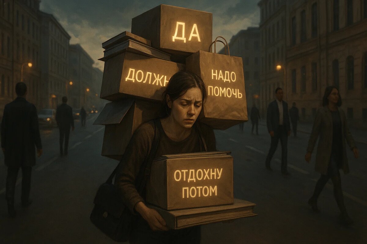 А на самом деле страшно: что отвергнут, разлюбят, назовут эгоисткой. Катастрофизация: «Скажу “нет” — и всё, меня перестанут любить».