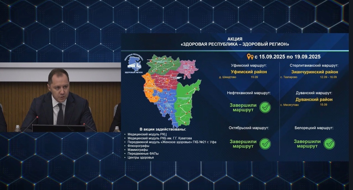 Радий Хабиров лично выяснит у медиков о состоянии здоровья населения и обсудит вопрос улучшения качества здравоохранения. В Башкирии на этой неделе завершает работу акция «Здоровая республика — здоровый регион», сообщил на оперативном совещании в ЦУРе министр здравоохранения республики Айрат Рахматуллин. Глава Башкирии сказал, что встретится с врачами и медперсоналом «поездов здоровья». «Хочу узнать, что можно улучшить и что волнует людей через призму их обращений к врачам», — сказал Радий Хабиров. Работа мобильных бригад медиков в этом году закончится посещением отдалённых населённых пунктов в Уфимском, Зианчуринском и Дуванском районах. В этом году в республике специалисты выполнили в 348 населённых пунктах более 171 тысячи осмотров, провели свыше 39 тысяч рентген-обследований, выявлено порядка 4 тысяч подозрений на онкологию, диабет, сердечно-сосудистое заболевание. Все пациенты взяты на контроль, добавил Айрат Рахматуллин. «Поблагодарите врачей за их работу», — отметил ранее Радий