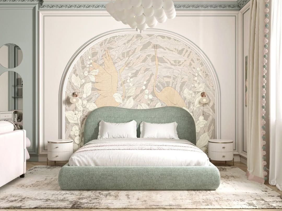 ✨️Детская комната площадью 27,4 кв.м. в частном доме в г. Ессентуки. Автор проекта - студия дизайна @intalio_design ✨️Комната оформлена в современном стиле с мягкими оттенками и элегантными линиями. Основное внимание привлекает настенное панно из коллекции обоев #Fantasy@affrescoru ( арт. AF2162-COL5) Оно представляет собой утонченный узор с элементами природы — стилизованные цветы и листья, выполненные в мягких пастельных тонах. Золотистые акценты придают ему легкость и изысканность. Арочная форма изображения создает ощущение пространства и гармонии, обвивая кровать и плавно переходя к потолку. Общий интерьер выглядит как место, где можно расслабиться и насладиться уютом. - Посмотреть фрески, панно, обои и ткани можно в нашем интернет магазине. 📞 8-800-555-31-51 📨 Salon@affresco.ru 🌏 affresco.ru ⏰ Срок изготовления от 5 раб дней 🚀 https://vk.com/affrescoru ✈️ https://dzen.ru/id/5f710c51fe660a4af44007cb - #affrescoru #affresco #аффреско #фрески #обои #фотообои #обоидлястен #дизайн