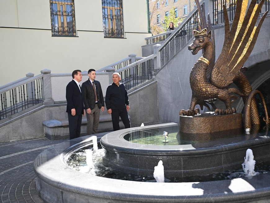 В ответ на пост 👀👍Рустам Минниханов и Ильсур Метшин осмотрели благоустроенный сквер «Зилант» Дополнительные акценты создают малые архитектурные формы: по два миниатюрных Зиланта и тюльпана украсили опоры освещения у входной группы сквера. Гранитными плитами облицевали лестничные сходы. Помимо фонтана, непосредственно за ним обновили арку и установили оригинальную металлическую декоративную дверь на подпорной стене. Проект реализовывал Институт развития Казани. Благоустройство сквера велось в рамках реализации национального проекта «Инфраструктура для жизни». @tatmediaofficial | Все каналы Татмедиа ™️ 1-й новостной MAX-канал Татарстана - подпишитесь.