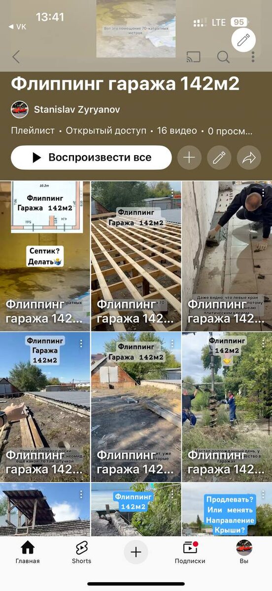 Импровизированный проект с названием «Флиппинг гаража 142м2» оказался по моему мнению успешным, сегодня увидел комментарий зрителя и решил создать плей лист под этот сериал ✌️🙂