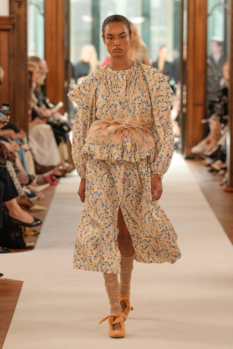 Ulla Johnson SS 2026 Коллекция черпала вдохновение из живописи, особенно из картин Хелен Франкенталер «Горы и море» и «Открытая стена». Эти произведения нашли отражение в текучих тканях и яркой палитре. Оптимистичные цвета и текстурные узоры, напоминающие перья, придали подиуму лёгкость и эмоциональную насыщенность, продолжая романтическую эстетику бренда Ulla Johnson . Воздушные платья, свободные вещи и свободный крой соответствовали ДНК марки, оставаясь при этом привлекательными для широкой аудитории. Однако у коллекции есть недостатки. Консерватизм: несмотря на высокое качество, она не вывела визуальный язык бренда на новый уровень. Коллекция следовала установленным канонам, а не экспериментировала, что вызывает вопрос, был ли это лишь момент для размышлений, а не переосмысления.
