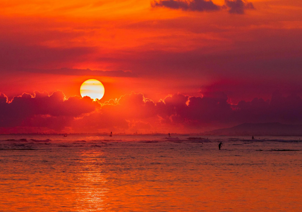 - Закат красный, потому что синий свет рассеивается по пути, а красный доходит до нас.