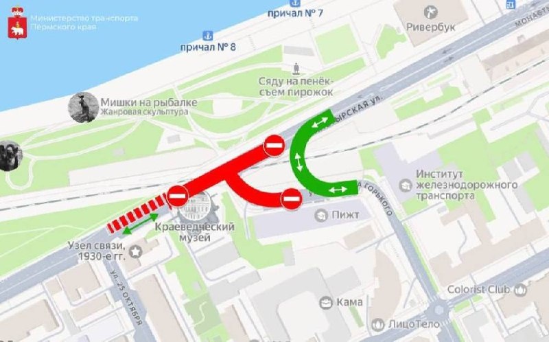 С 20 сентября до 1 ноября в Перми закроют движение по ул. Монастырской на участке от ул. 25-го Октября до ул. Максима Горького. Ограничения связаны с реконструкцией путепровода: сначала его разберут, затем проведут обновление конструкций. Для автомобилистов проезд к станции Пермь I, Речному вокзалу и площади Трех столетий организуют через ул. Максима Горького. К 20 сентября здесь откроется новый поворотный участок с уложенным асфальтом. По этой же схеме смогут передвигаться пешеходы (по временному тротуару) и автобусы. Частично сохранится движение и к Дому Мешкова – по одной полосе. Подъехать к музею можно, однако парковка рядом с ним запрещена. 🔴 Подписывайтесь на Business Class | Оставляйте «бусты»