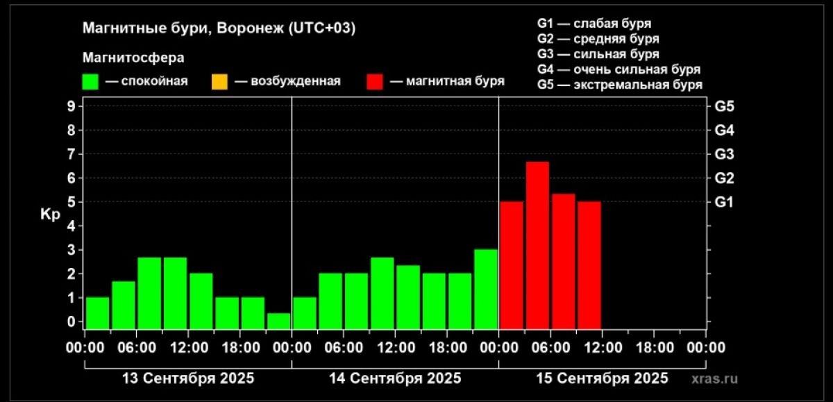 Жителям Воронежской области следует быть внимательными: на Земле началась мощная магнитная буря, способная повлиять на погодные условия и работу электронных устройств. Как сообщает Лаборатория солнечной астрономии Института космических исследований РАН, уровень возмущения магнитосферы достиг отметки G3. Подобные явления не фиксировались российскими учеными более трех месяцев. Причиной явления стал интенсивный солнечный ветер, вызванный прохождением нашей планеты через границы крупной корональной дыры на Солнце. Событие началось в ночь с 14 на 15 сентября, однако ученые заранее предупреждали о возможной магнитной буре, начиная с 12 сентября, и прогнозировали ее продолжительность около шести дней. По последним данным, магнитная активность будет сохраняться и даже усиливаться в течение ближайших 4–6 суток, с полной нормализацией магнитосферы не ранее 18–19 сентября. При этом возможны краткосрочные всплески, продолжительность которых может составлять от 6 до 9 часов. Специалисты рекомендую