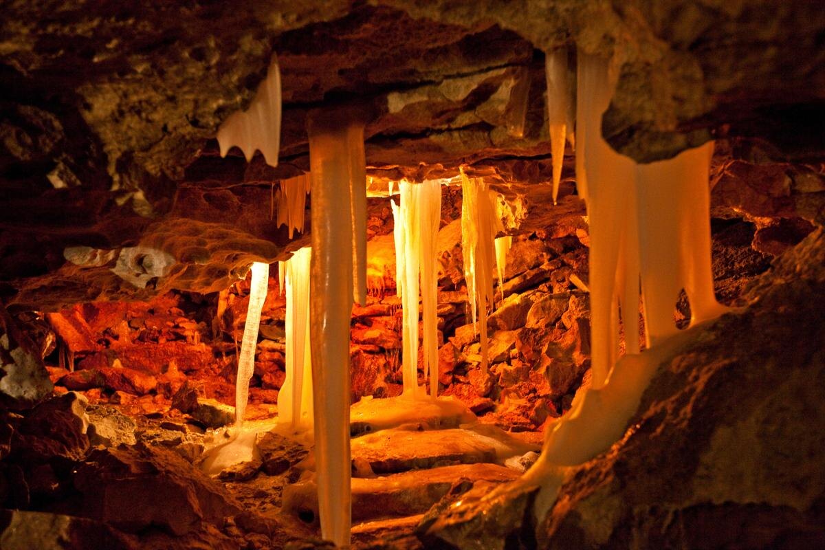 - Ледяные образования: Сталактиты и сталагмиты из льда растут необычно быстро — до нескольких сантиметров в год. Это происходит из-за конденсации влаги на холодных поверхностях. Однако в пещере есть зоны, где лед "оживает": он трескается, тает или даже "двигается", что может быть связано с сейсмической активностью или изменениями давления.