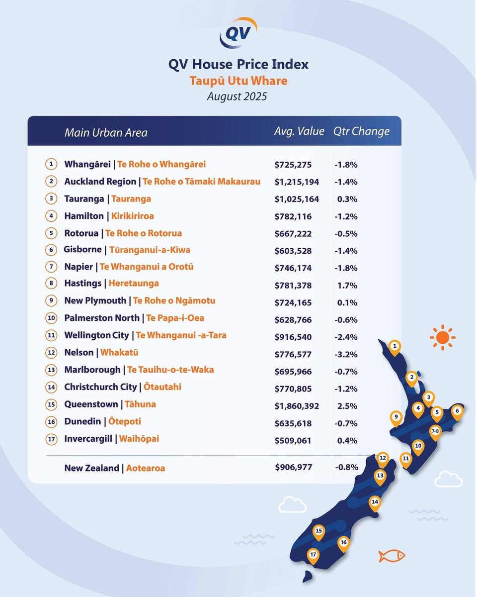 Средняя стоимость жилья в Новой Зеландии по городам Свежий отчет оценки жилья от QV. 3 самых дорогих города: - Квинстаун, 1,86 млн нзд - Окленд, 1,22 млн нзд - Тауранга 1,03 млн нзд 3 самых доступных города: - Инверкаргилл, 509 тыс нзд - Гисборн, 603 тыс нзд - Палмерстон Норт, 629 тыс нзд #НЗжизнь