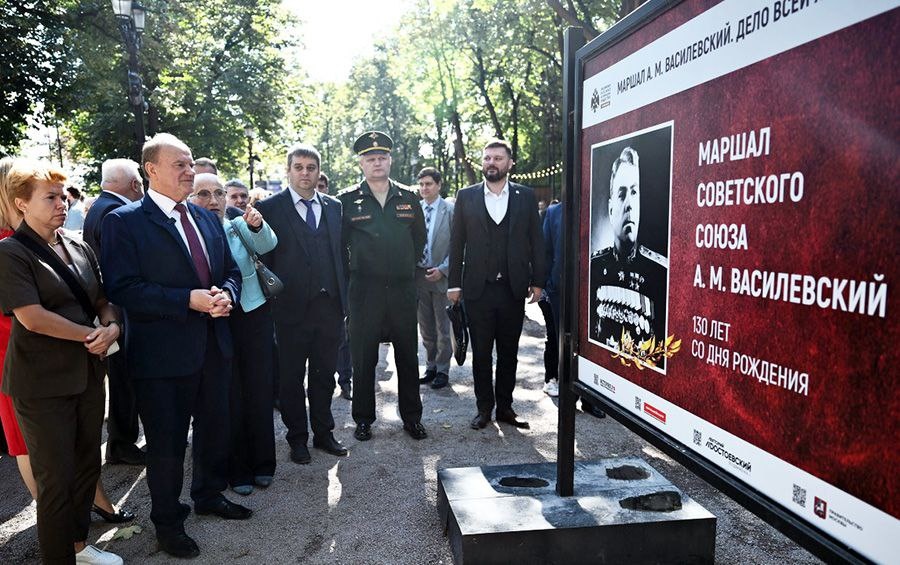 Г.А. Зюганов: Пример маршала Василевского вдохновляет нас к новым победам В четверг, 11 сентября, в Москве на Гоголевском бульваре состоялось торжественное открытие фотовыставки «Маршал Советского Союза Василевский А.М. Дело всей жизни», посвященной 130-летию выдающегося военачальника. Выставка организована Российским Союзом ветеранов при участии Российского военно-исторического общества, поддержке Комитета общественных связей и молодежной политики и Департамента культуры города Москвы. В церемонии открытия принял участие Председатель ЦК КПРФ Г.А. Зюганов.