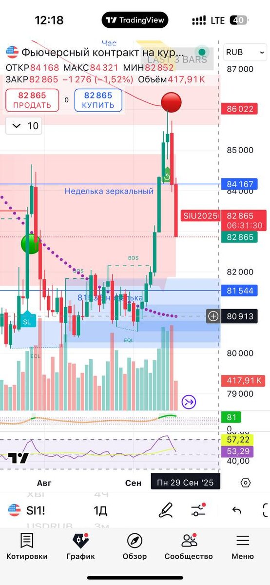В ответ на пост Примерно на 82 жду остановку ( +-70 копеек еще к межбанку ) В голове держим 80-81 как возможный сценарий . Нас еще поводят в этом канале