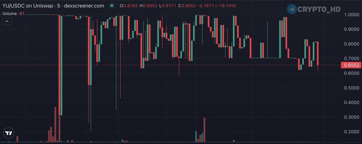 🫨 Стейблкоин #YU от проекта Yala вчера резко потерял привязку к доллару после атаки на протокол – курс опускался до $0,2046.