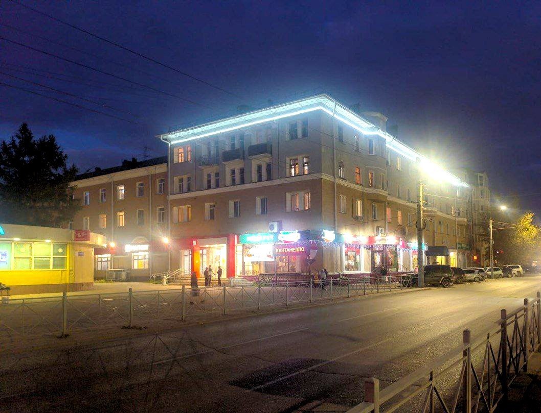 В Омске еще один фасад дома украсили архитектурной подсветкой