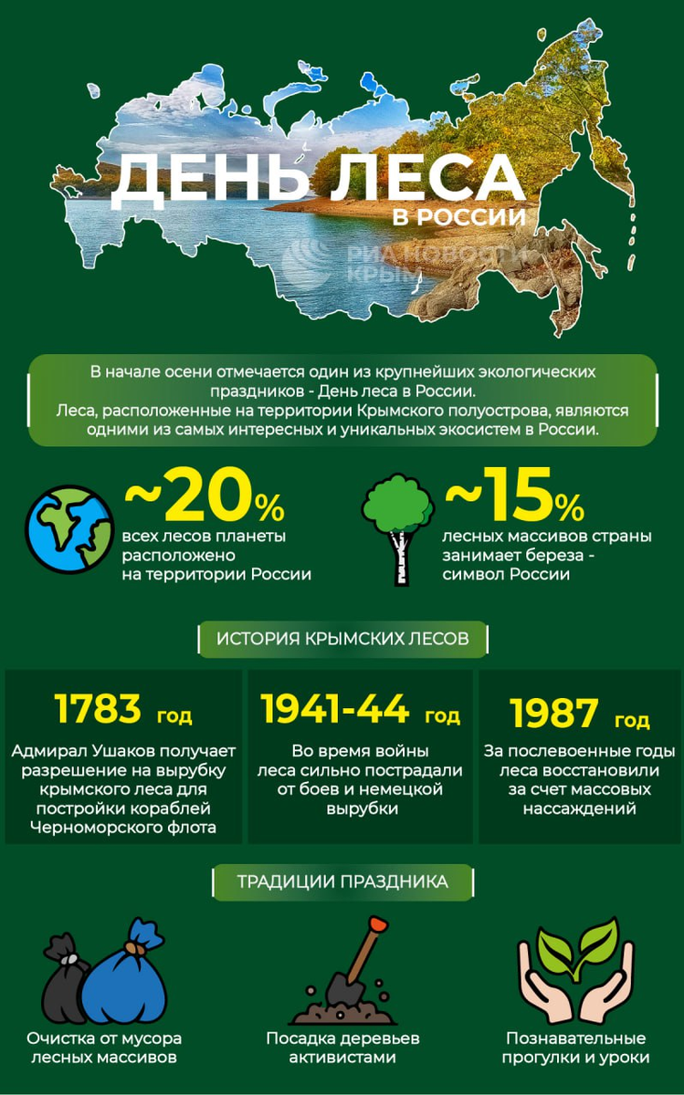 Ежегодно 21 марта во всем мире отмечается Международный день леса. Этот праздник учрежден Генеральной Ассамблеей ООН в 2012 году и направлен на привлечение внимания к важности сохранения и восстановления лесных ресурсов. Леса занимают треть суши Земли и являются “легкими планеты”. Они поглощают углекислый газ, вырабатывают кислород, регулируют климат и обеспечивают миллионы людей продуктами питания, лекарствами и древесиной. Однако ежегодно человечество теряет миллионы гектаров лесов из-за вырубки, пожаров и нерационального использования природных ресурсов. Каждый год ООН выбирает новую тему Международного дня леса. Она касается актуальных экологических проблем — от борьбы с опустыниванием и изменения климата до восстановления лесов и защиты биоразнообразия. В разных регионах страны в этот день проходят экологические акции: • посадка деревьев и уход за лесными насаждениями, • уборка территорий, • выставки и образовательные программы для школьников, • лекции о значении леса для будущих