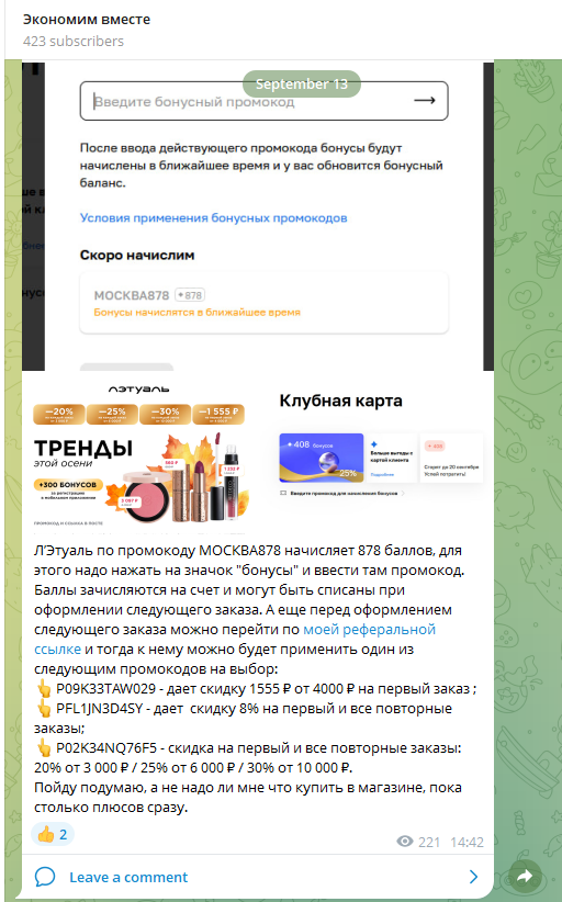 Решила посчитать сколько удалось сэкономить на прошлой неделе и поделиться с вами, тем более, что способы экономии у меня были очень разные. Тут все не обошлось одними покупками по акциям от банков. По случаю дня города Москвы магазин косметики Летуаль по промокоду начислял 878 баллов на счет. Об этом я писала у себя в телеграмм-канале. Получив столько бонусов я сразу вспомнила о косметике любимой фирмы Biotherm. Ее сейчас в Москве не так-то просто найти. В онлайн магазине Летуаль она есть, но с доставкой из-за рубежа. На покупки из-за рубежа не действуют промокоды на скидку, а вот баллы списать на них можно и это очень удобно. И опять же я посчитала, что если закажу сейчас, то заказ придет где-то через месяц, это я знаю по собственному опыту, хотя магазин указывает срок доставки 2 недели. А через месяц у меня как раз закончится средство для дневного ухода. В общем заказала я этот крем, чуть позже еще получу кэшбэк 5%, поскольку оплачивала по карту с выбранной категорией повышенного