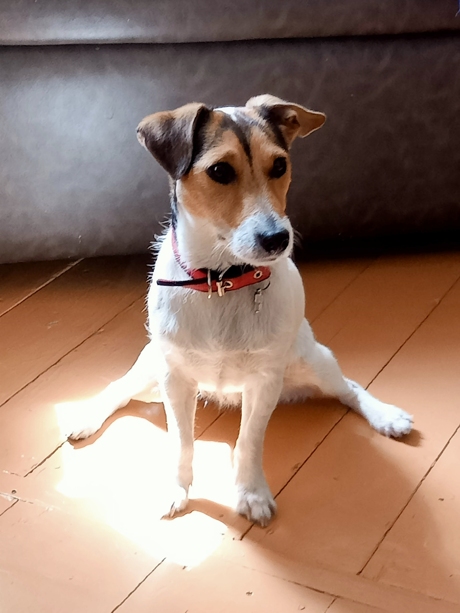 Когда мы только завели Чили, я читала много литературы на тему породы Джек Рассел (ну, мы думали, что она породистая, а я ещё и верила в то, что порода определяет характер). По канону псица должна была рвать и метать все, что бегает, прыгает и издает какие-либо звуки. Ведь она ж охотничья порода, вон и хвост у нее купирован ровно настолько, чтобы можно было схватить за него ладонью и тащить из норы, куда она загнала какую-нибудь лисицу. По факту инстинкты у Чили срабатывают на мягкие игрушки и особенно (!)пищалки, которые она душит и рвет, пока писк не прекратиться. На мясо и сосиски. Всякую мелочь, вроде мышей. И один-единственный раз она втихушку передушила нам пять или шесть кур, гуляющих вне загона. Но в этом она так и не созналась, кур осматривала вместе с нами скорбно и удивлённо (ага, прикопанных в разных местах двора!) и была возмущена, когда ее ругали. До сих пор считает, что она не виновата. Но вот с кошками у нее не сложилось. По нашей задумке, Чили должна была самоотверже