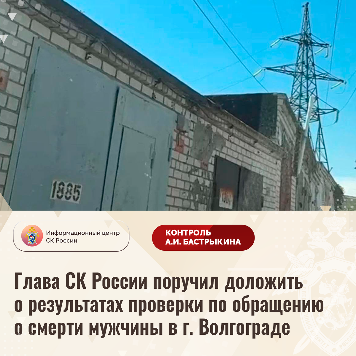 Глава СК России поручил доложить о результатах проверки по обращению о смерти мужчины в г. Волгограде К Председателю СК России А.И. Бастрыкину в его приёмную «ВКонтакте» обратился житель города Волгограда. Он сообщил, что в августе текущего года его брат при выполнении кровельных работ на крыше гаража соприкоснулся с высоковольтным проводом, расположенным на высоте, не соответствующей установленным нормативам. От полученного удара током пострадавший скончался на месте происшествия. Заявитель отмечает, что линии электропередач установлены с многочисленными нарушениями: оборудование размещено в гаражном кооперативе в непосредственной близости от построек, а предупреждающие знаки и ограждения отсутствуют. В результате за несколько лет при аналогичных обстоятельствах погибли еще несколько человек. При этом руководством сетевой компании мер реагирования не принимается, обращения граждан игнорируются. Ранее указанная ситуация освещалась в СМИ. В СУ СК России по Волгоградской области по данн
