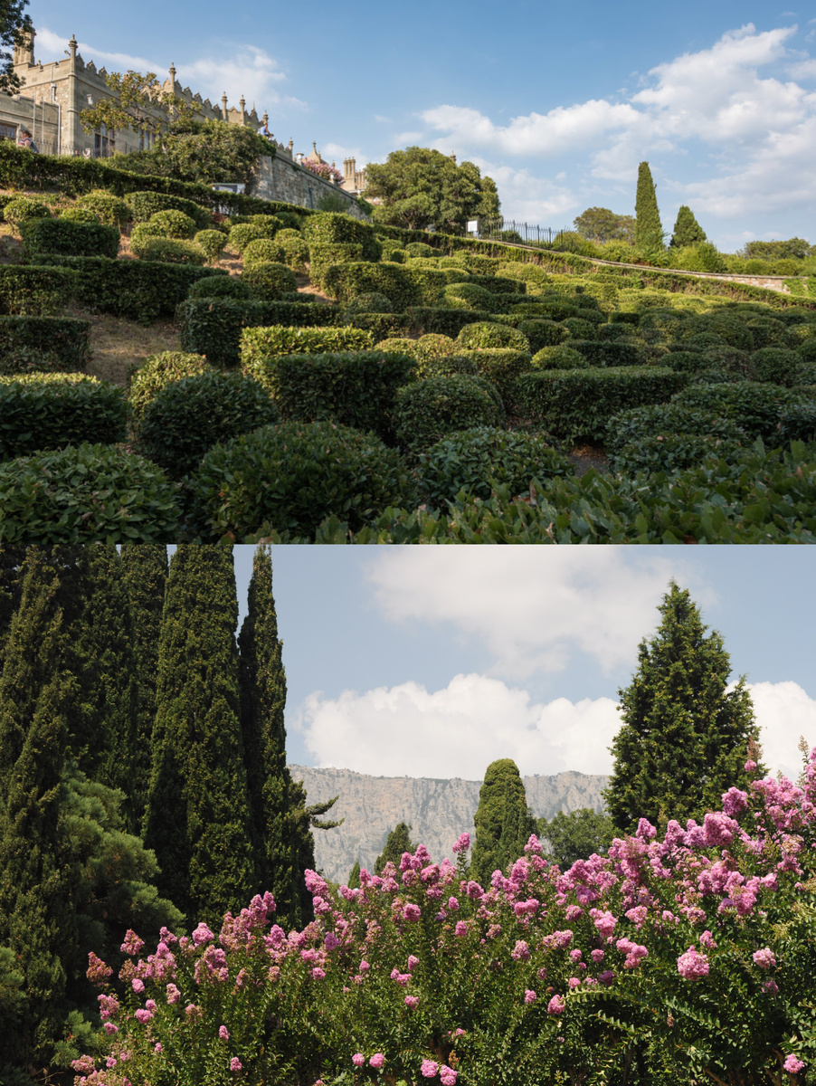 В Воронцовском парке прекрасно все - воздух, растения, шум деревьев, виднеющиеся сквозь крону деревьев Чёрное море и Крымские горы. Мне этот парк нравится больше, чем современный парк Айвазовского в Партените.
