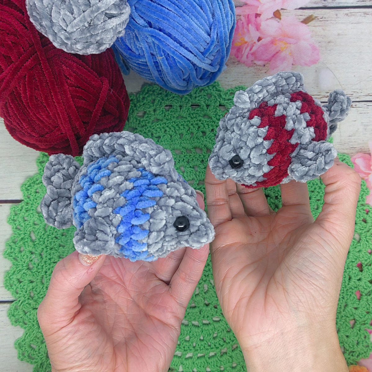 Вторая неделя борьбы с остатками плюшевой нити: первый вариант вязания рыб крючком без пришивания
