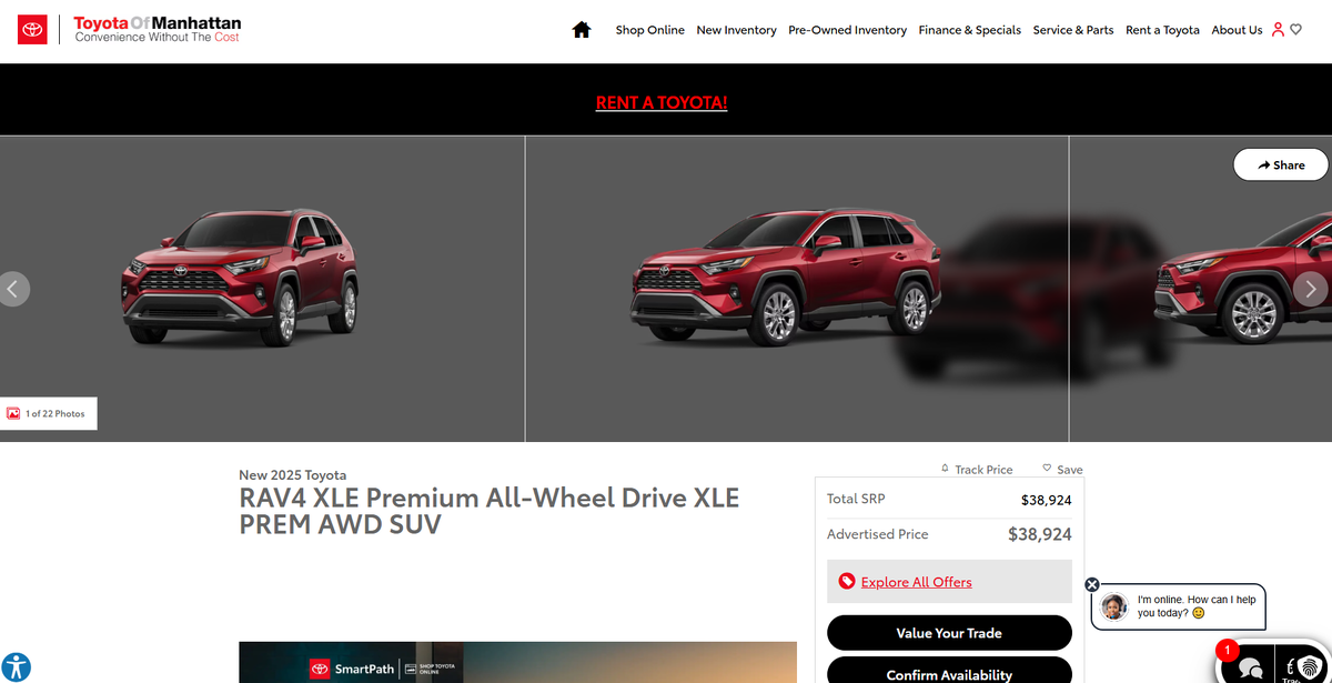 Начнем со стран американских континентов, вот например в США, примерно такая же версия Рав 4 с панорамной крышей и люком, однако с дисками R19, (а в нашей основной версии - R18) так как полностью идентичной версии там не продается стоит в автосалоне на манхеттене 38.924$(3.230.692 на нашу деньгу), что звучит как весьма экономичный автомобиль.