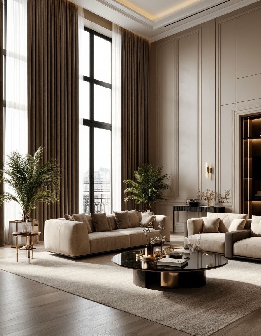 Комната в стиле «Модерн». Промпт: Роскошный номер в современном стиле с элегантной мебелью, большими окнами и минималистичным декором создает ощущение простора и элегантности. Нейросеть: Шедеврум Студия. #цифроваяживопись #нейросеть #комната #нейроарт #идеи #цифровоефото #рисунок #арт #нейрофото #артыотнейросетей #ai #DigitalDreamscapes #digitalart #шедеврум #aiartwork #нейроSD #шедеврумстудия #иллюстрация #квартира