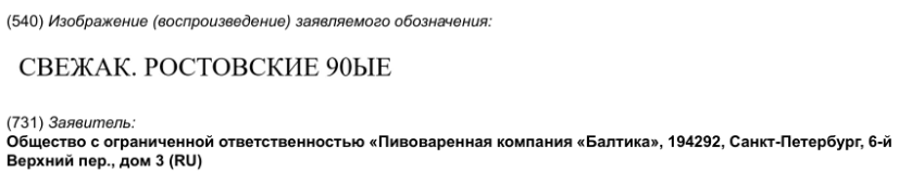 «Балтика» регистрирует бренд пива «Свежак. Ростовские 90-е»