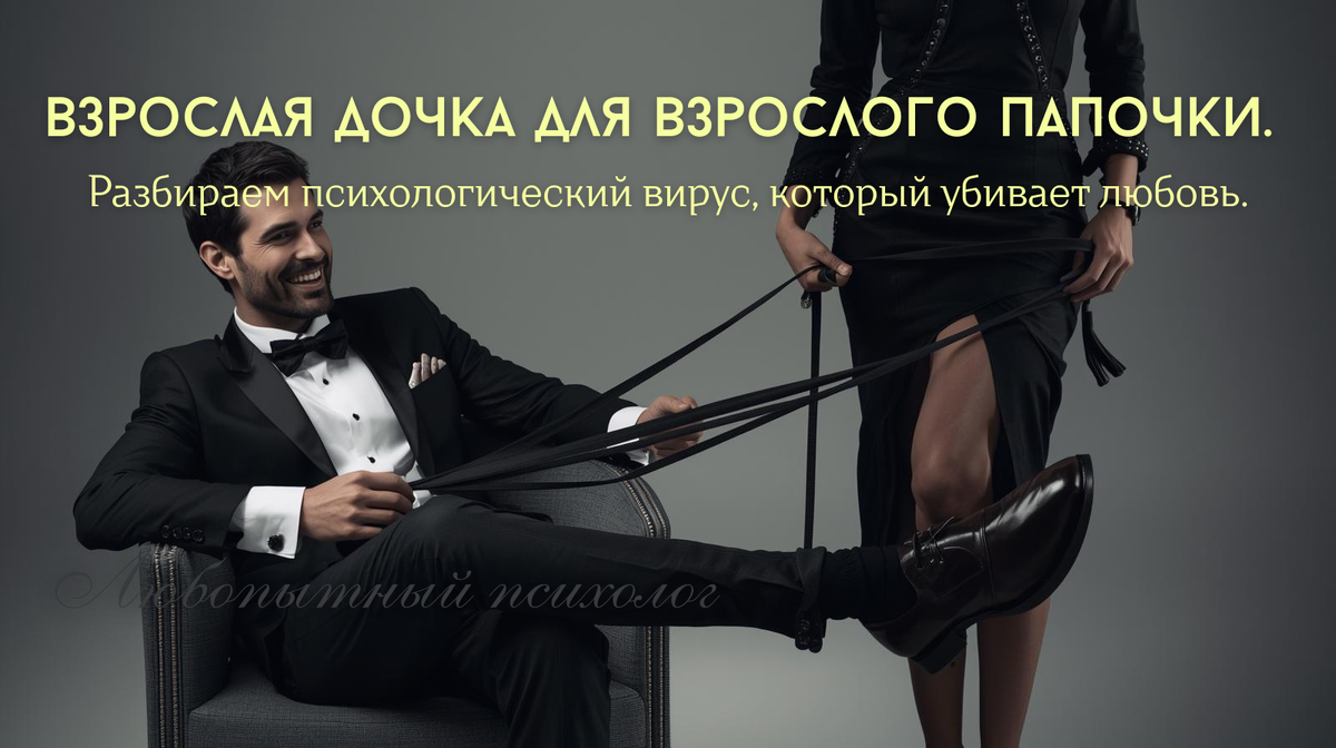 Отношения отец-дочь -это вертикальная иерархия, где взрослый человек заботится о ребёнке, принимает за него решения и имеет абсолютную власть. Дочь подчиняется отцу не из любви и уважения к равному, а из детской зависимости.